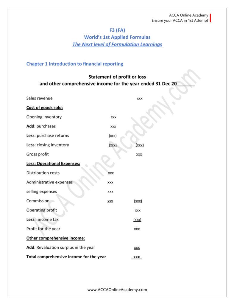 “F3 (FA) Formulas Notes” by ACCA Online Academy.Com. But If you want complete (Pdf) Click below: