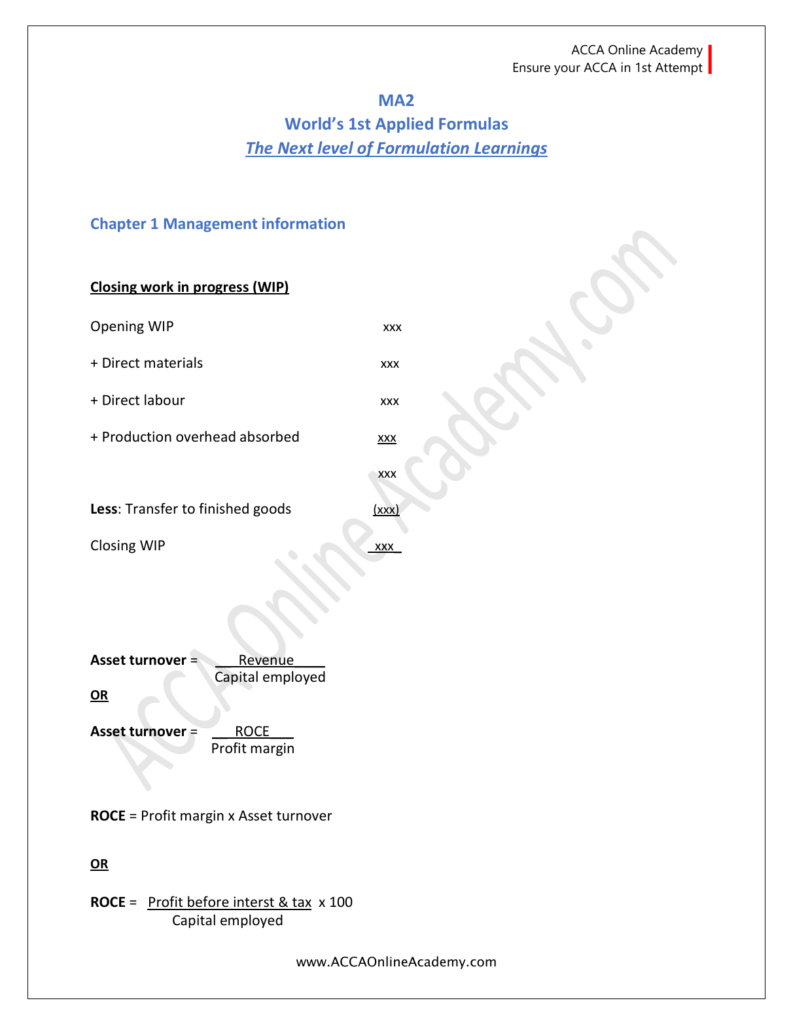 “MA-2 Formulas Notes” by ACCA Online Academy.Com. But If you want complete (Pdf) Click below: