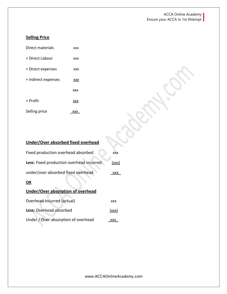 *ACCA MA-2 Formulas Notes Valid Up to 31 August 2026.